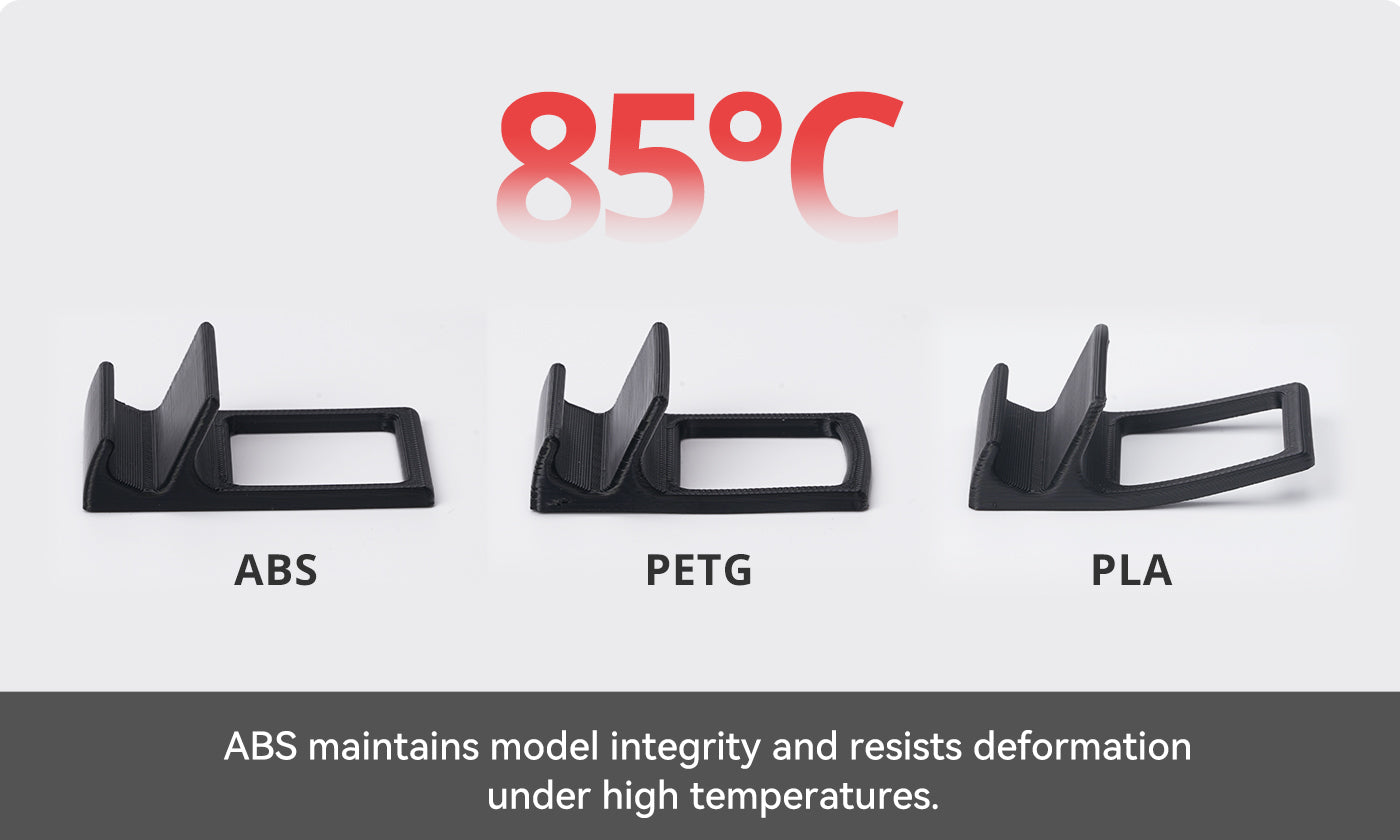 Anycubic ABS filament maintains model durability, form, and strength even in environments up to 85°C. ABS maintains model integrity and resists deformation under high temperatures.