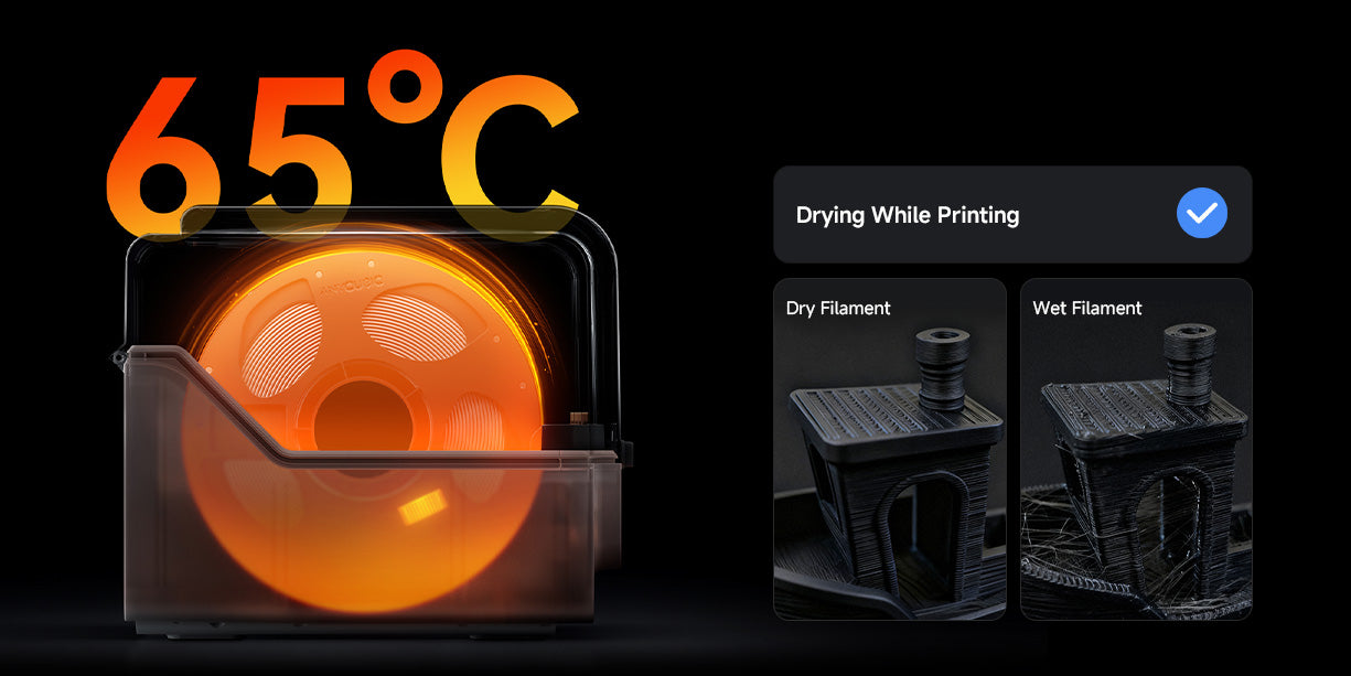Want to print perfect models? Filament drying is key. The ACE 2 Pro supports simultaneous drying and printing, keeping the filaments as fresh as the day they came in.