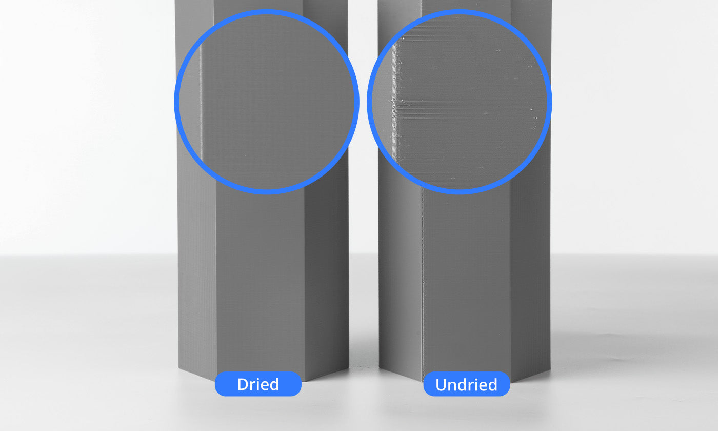 You must dry PETG Translucent filaments before printing and store them in a moisture-controlled environment to prevent air bubbles during printing.