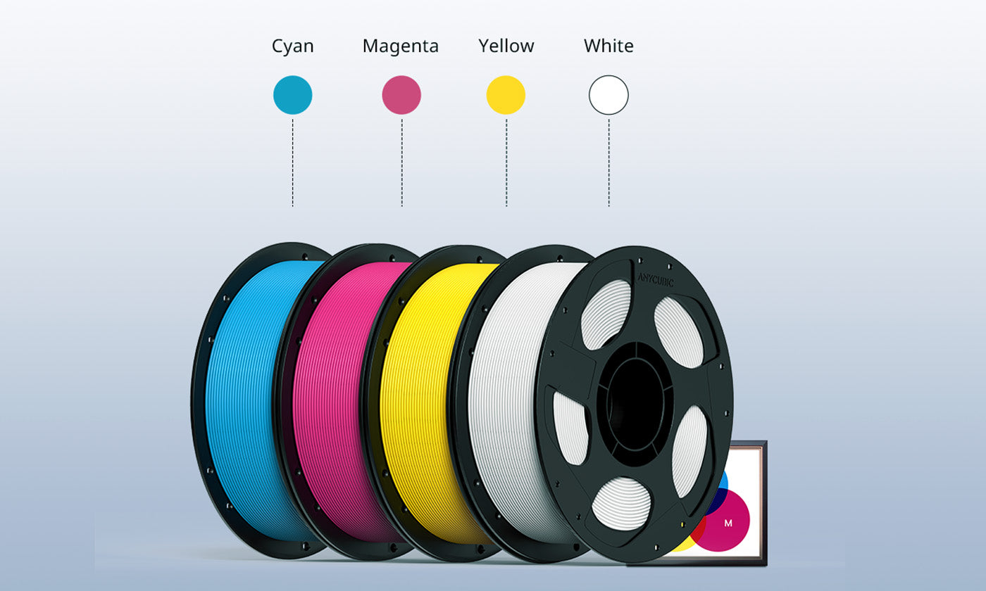 The Anycubic Translucent Embossment CMYK filament uses Cyan, Magenta, Yellow, and White to produce stunning, multi-colored prints with the ACE Pro. By leveraging the principle of translucent color mixing, overlapping filament layers blend to create new colors. Adjusting the proportions of the four colors allows you to generate over one million unique color combinations under light.