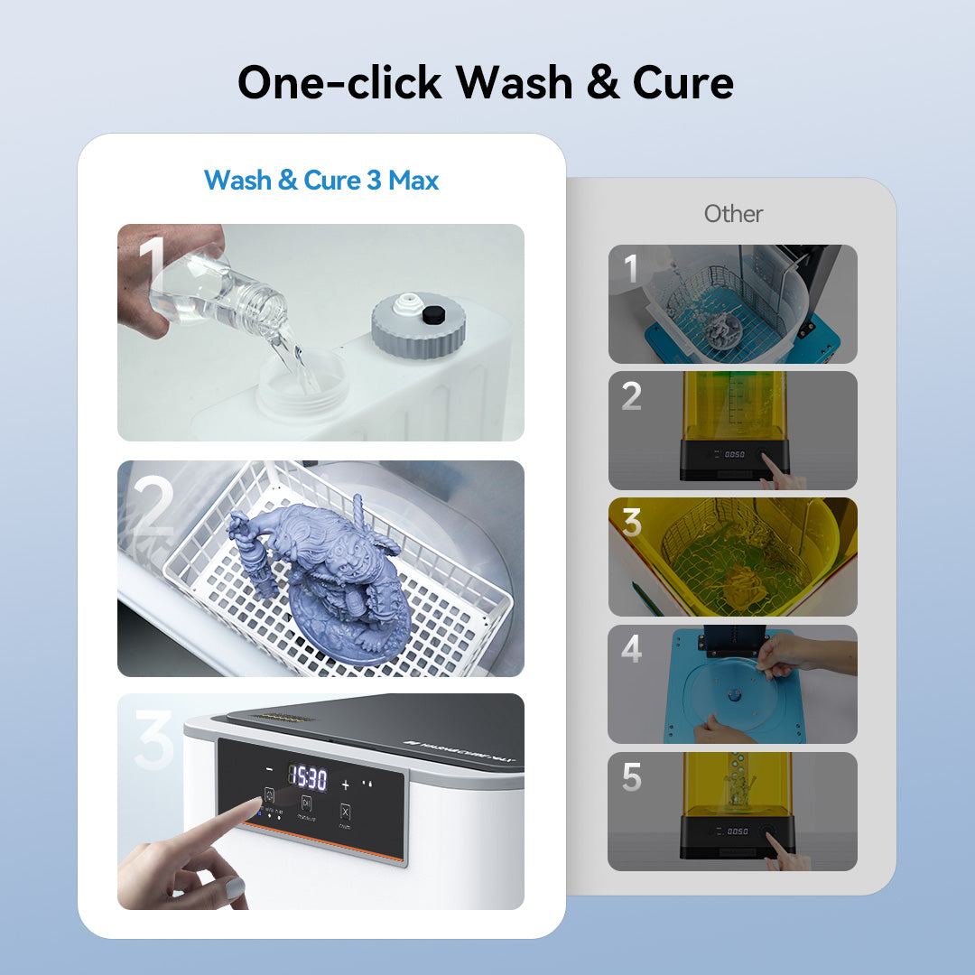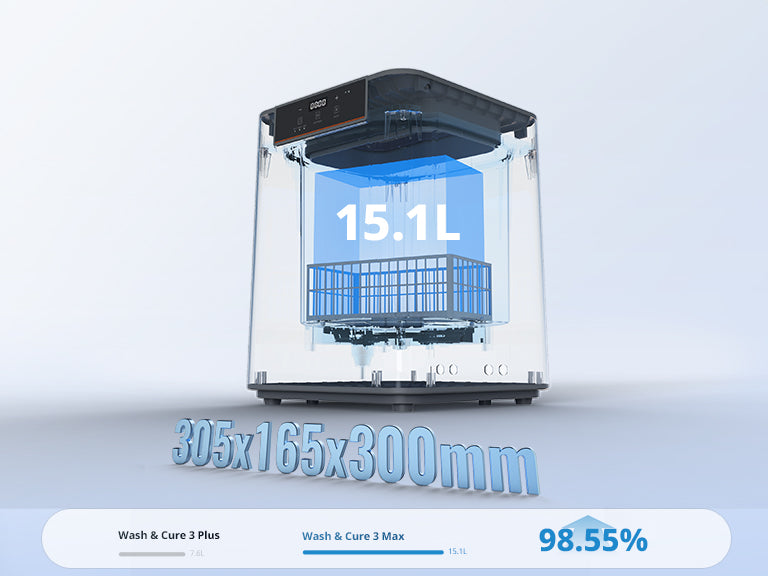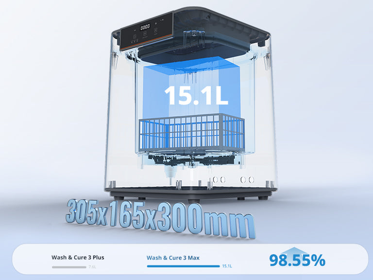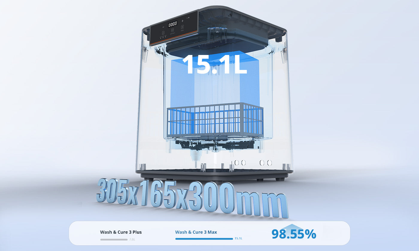 - 98.55% larger wash capacity than the Anycubic Wash & Cure 3 Plus