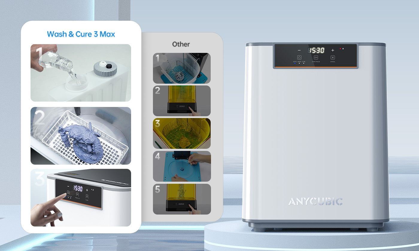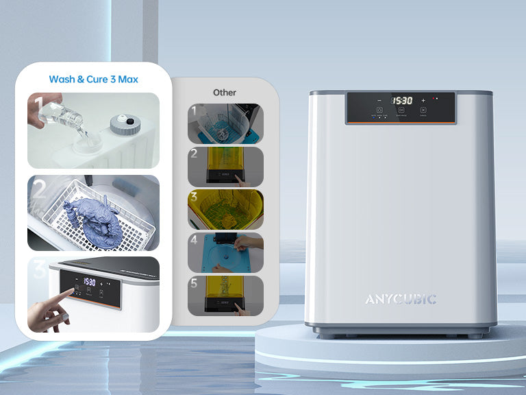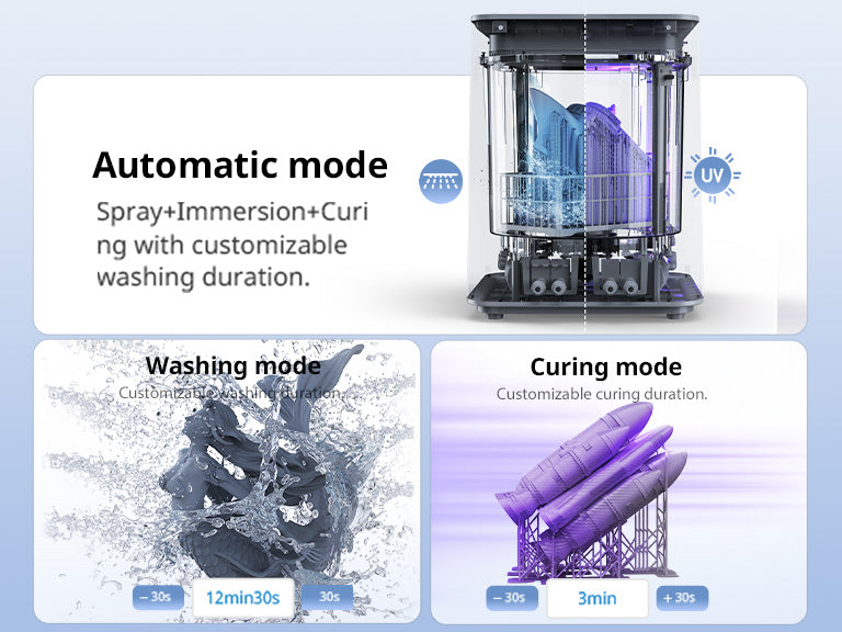 One-click fully automated washing & curing—no more dirty hands.